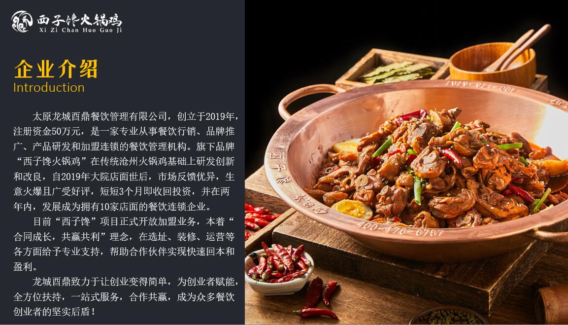 太原龍城酉鼎餐飲管理有限公司,創(chuàng)立于2019年, 注冊資金50萬元,是一家專業(yè)從事餐飲行銷、品牌推廣、產(chǎn)品研發(fā)和加盟連鎖的餐飲管理機(jī)構(gòu)。旗下品牌“西子饞火鍋雞”在傳統(tǒng)滄州火鍋雞基礎(chǔ)上研發(fā)創(chuàng)新和改良,自2019年大院店面世后,市場反饋優(yōu)異,生意火爆且廣受好評,短短3個月即收回投資,并在兩年內(nèi),發(fā)展成為擁有10家店面的餐飲連鎖企業(yè)。